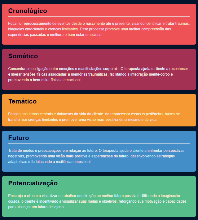 Ainda estou no primeiro método, o cronológico, e já consigo enxergar e reprocessar traumas emocionais que nem imaginava ter. Ao fazer o filme dos meus 0 a 5 anos de idade, descobri algo essencial: uma memória de quando uma professora gritava comigo, dizendo palavras desmotivadoras. Antes, eu não entendia por que o autoritarismo me tirava do controle e despertava tanta raiva. Hoje, sei que essa reação estava ligada a um trauma não resolvido. Naquele momento da infância, eu não consegui reagir, e meu cérebro registrou isso. Agora, sempre que vivencio algo semelhante, essa emoção volta à tona.